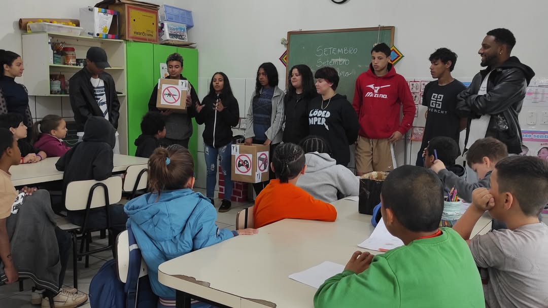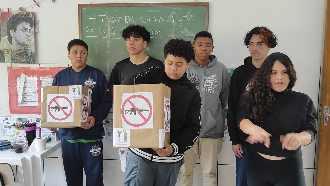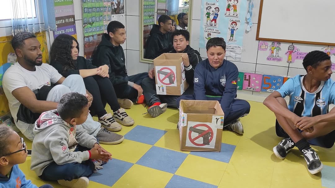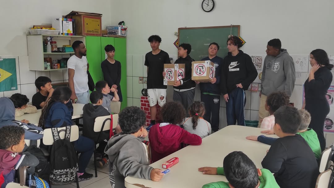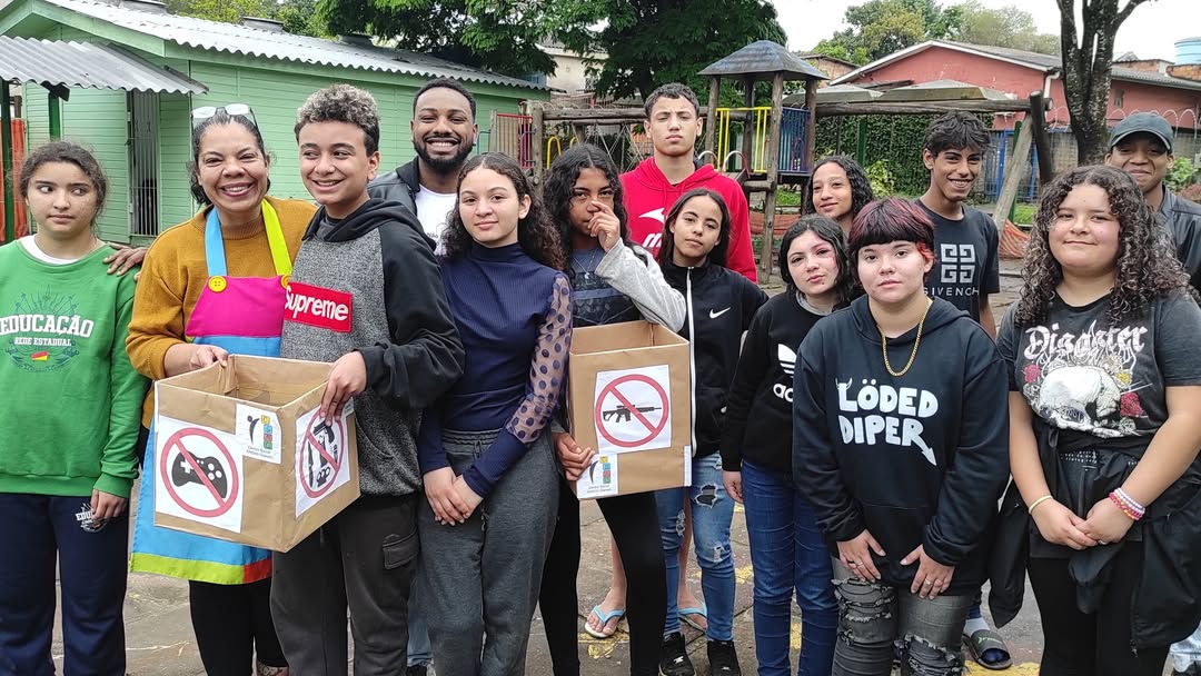22 adolescentes do Serviço de Convivência e Fortalecimento de Vínculos da Adolescência reforçaram a campanha "ARMA, NEM DE BRINQUEDO!", realizada anualmente pelo Centro Social Gianelli. Nessa ação, 13 turmas de crianças e adolescentes foram visitadas no Centro Social Gianelli e na Escola Luiz Gama.